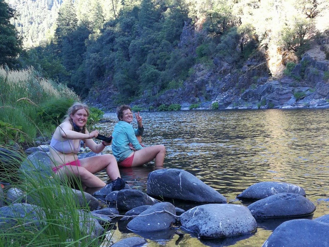 Since we didn’t have a good shower or laundry since too long, we were eager to camp next to a bigger creek. The Middle Fork Feather River was perfect – we camped right next to the river at mile 1250 and did some laundry. The girls took a dip in the rather warm river – I refrained with my cold from that.